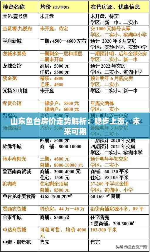 总之,山东鱼台房价在近年来呈现稳步上涨的趋势,未来有望持续增长。购房者应密切关注市场动态,合理规划购房策略,抓住投资机会。