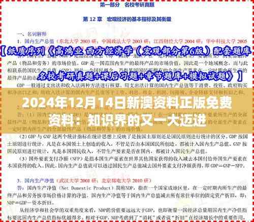2024年12月14日,对知识界而言,是一个载入史册的日子。这一天,澳门政策文件宣布一项重大举措:新澳资料正版免费资料的全面开放。这是一个前所未有的决定,标志着知识界的又一个历史性的迈进。这项新政策的实施,意味着知识的获取将进一步打破限制,为公众带来更加广泛的便利和益处。