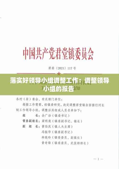 在组织发展的过程中,领导小组的调整是必不可少的环节。它不仅关系到组织的决策效率,也影响着团队的凝聚力和执行力。本文将探讨如何落实好领导小组的调整工作,确保组织在新的领导下继续保持活力和竞争力。